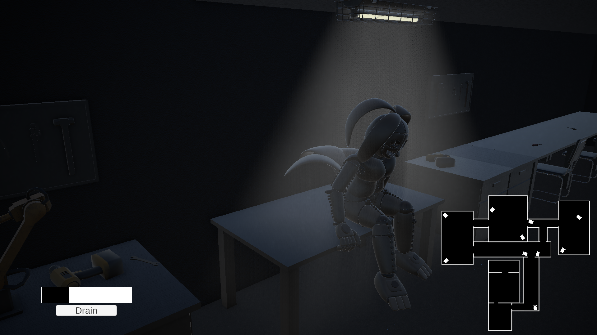 - Right click or CTRL to turn on flashlight